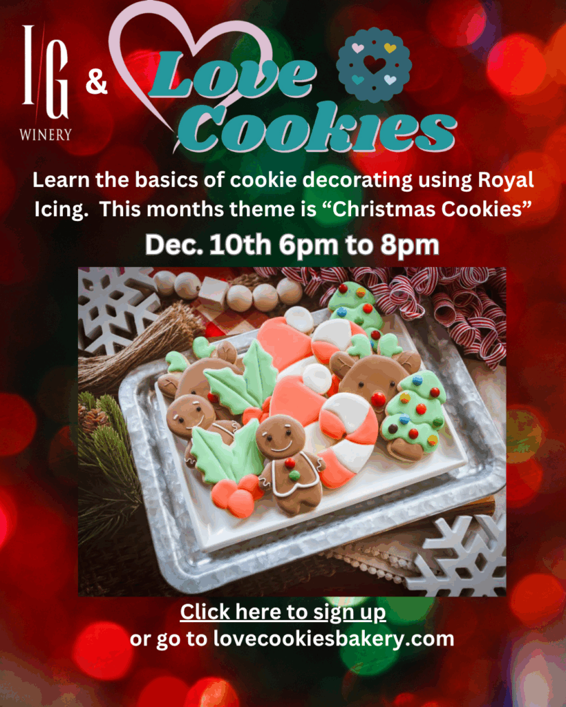 The only event you will find that gives you permission to do two of your favorite things at the same time; drink wine and eat cookies! Come and join us for this fun cookie decorating class!  Bring yourself or bring your friends for a deliciously sweet evening. Sip some wine, a cocktail or a mocktail during this casual class where each person will work with Royal Icing as they decorate 6 specially chosen sugar cookies. With step-by-step instruction, you will be guided through the process of working with Royal Icing, basic decorating techniques, how to correct mistakes, tips and tricks with cookie decorating, and how to create fun and tasty cookies for any occasion. This is a beginner-level course and includes 6 un-decorated sugar cookies, royal icing, piping bags, all sprinkles and decor, and all tools needed to decorate the cookies. The class will conclude with the option to take Instagram-worthy photos at the themed photo booth, and each participant will go home with their 6 decorated cookies to enjoy.