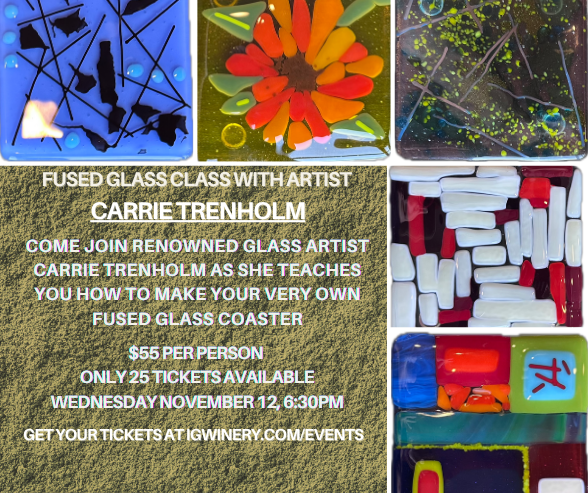 We are pleased to offer this class on fused glass taught by Carrie as she teaches about method, technique and the her collected secret of making amazing works of art.