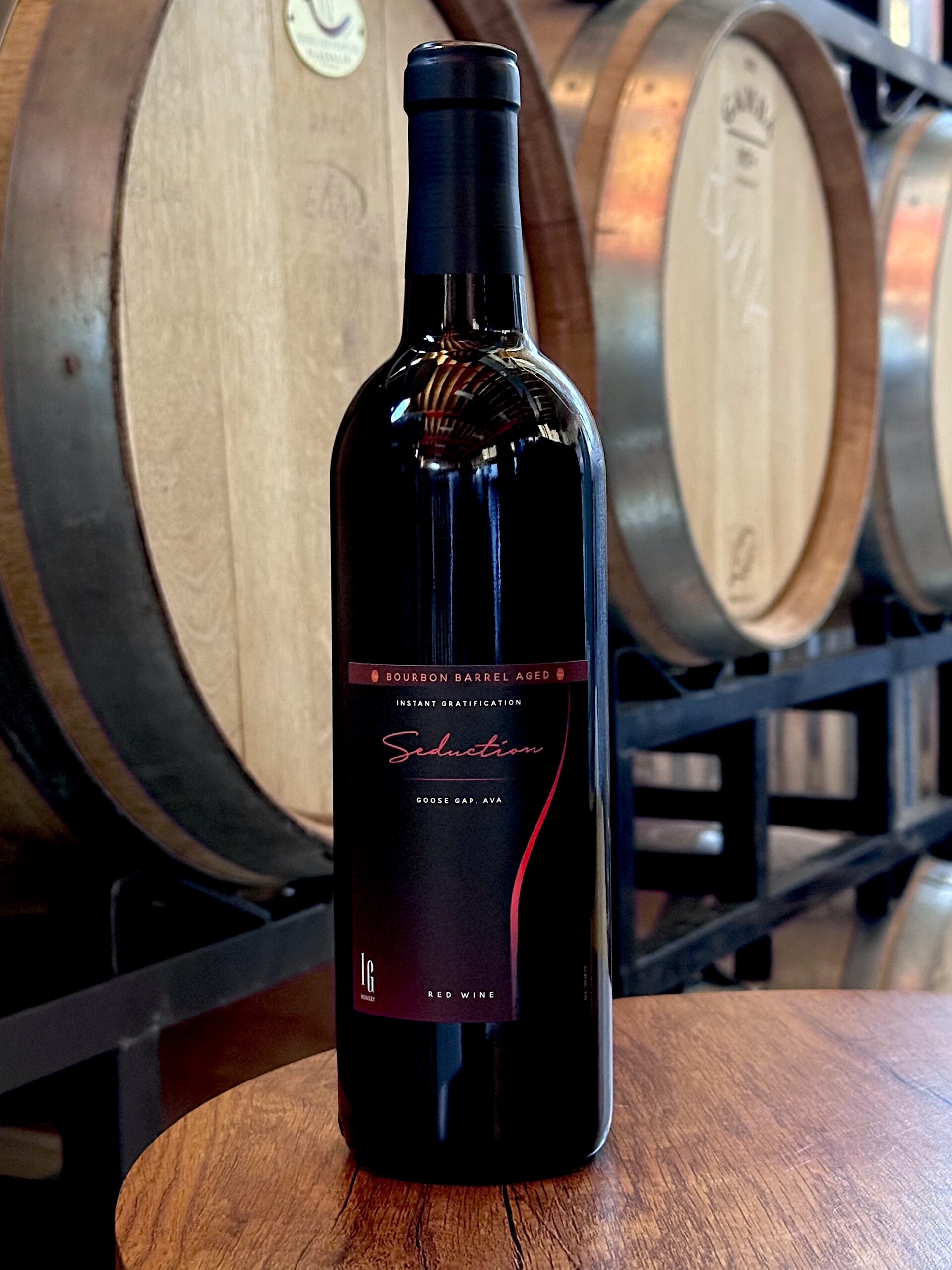 We take our classic Seduction red blend and we age it in Bourbon barrels from variety of the country’s great Bourbon distilleries. Bourbon barrel aging gives this wine a hint more caramel flavor and a hot of that special bourbon flavor so many wine enthusiasts have come to love. We brought the first bourbon barrel red wine to Utah and this is the wine that started it all.